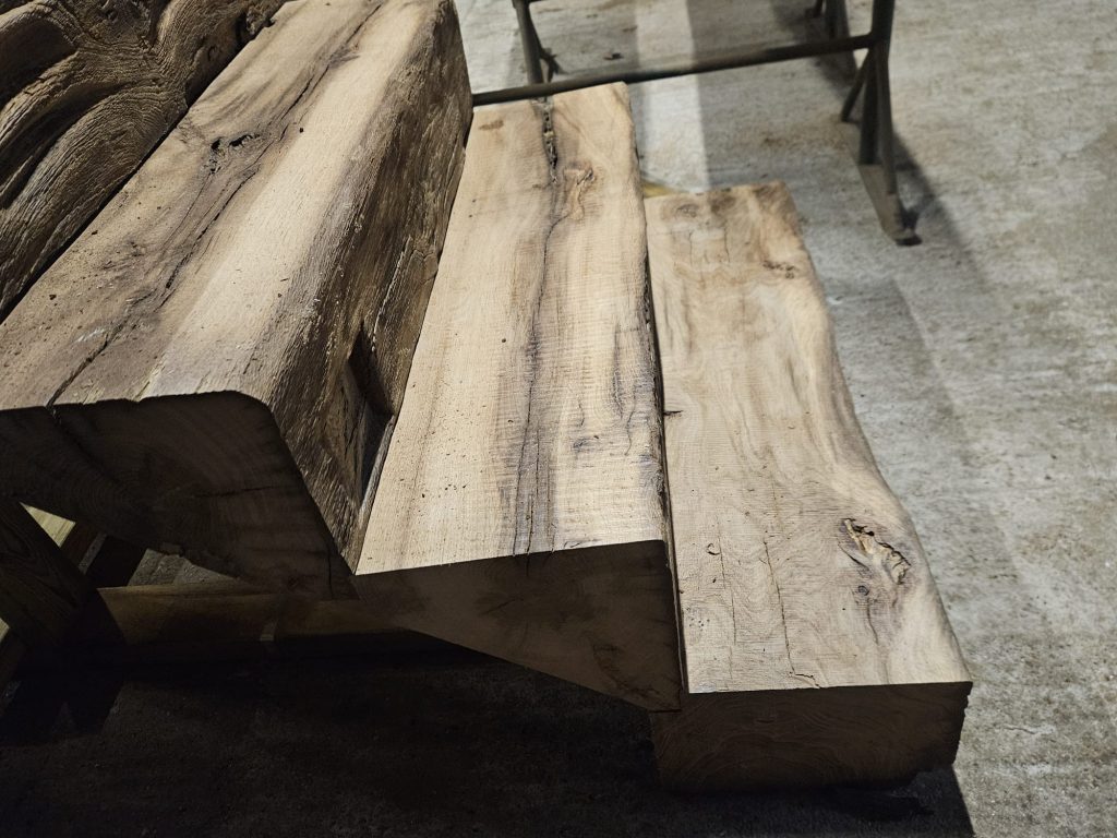 With a vast selection of ancient oak beams in our yard, our skilled craftsmen began the delicate process of selection.