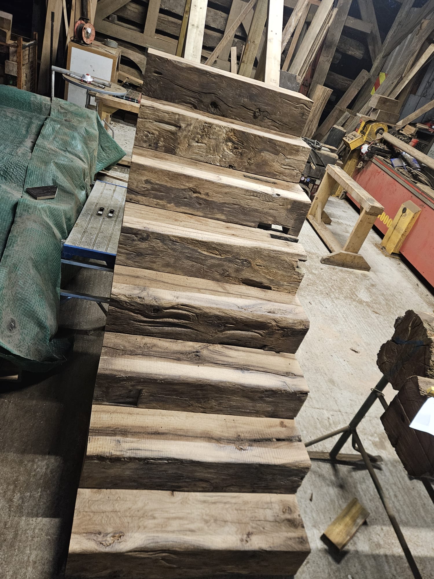 With a vast selection of ancient oak beams in our yard, our skilled craftsmen began the delicate process of selection.